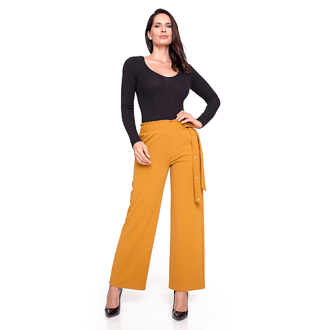 Pantalón ancho con elástico en cintura con amarra al costado y aplicación de ojetillo
